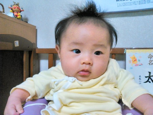 我が家の王様、落ち武者のようなヘアー^^;見かねて、ハサミを入れてしまいました・・・・・『虎刈り』になってしまいました!(^^)!男らしいさ、急上昇です(*^_^*)