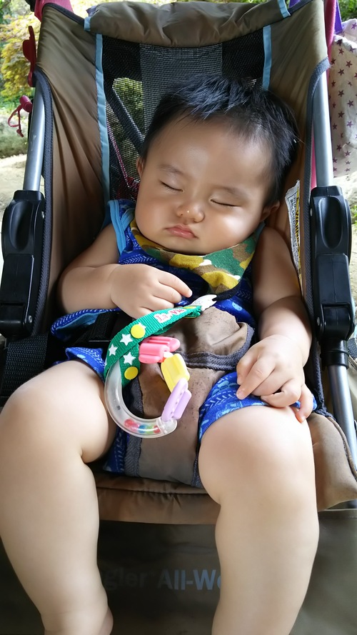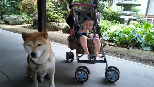 少しずつ暑さも和らいできました!我が家の王様、クーラー生活ばかりでしたが、今日は、久しぶりにベビーカーで散歩出来ました。気持ち良さそうに、お昼寝出来ました\(^^)/愛犬『鉄』と、仲良し(*^o^)/\(^-^*)さんです。