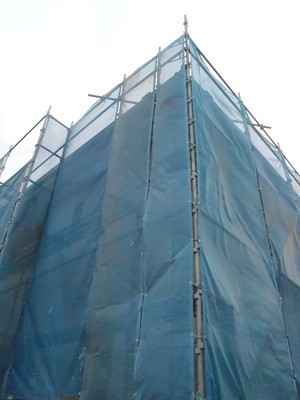 間も無く、足場とシートが外れます。