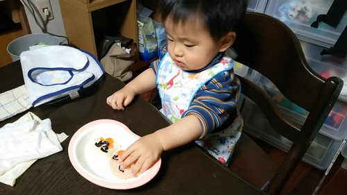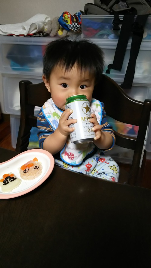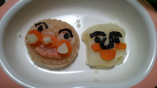 初めて『アンパンマン』のおにぎりを作ってみました(*^^*)我が家の王子様、大喜びでした!家族で、乾杯(^-^)vをして、夕食を満喫しました(*^^*)