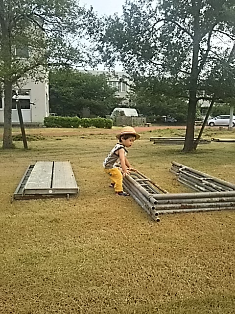 我が家の王子様、職人気質かしら?『足場』をみたら、持ち上げようと、頑張ってます(^^)