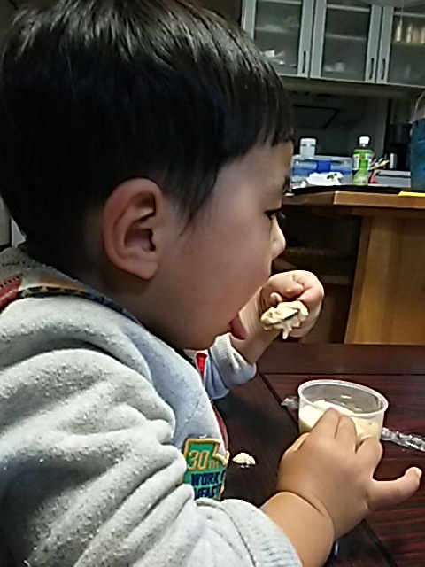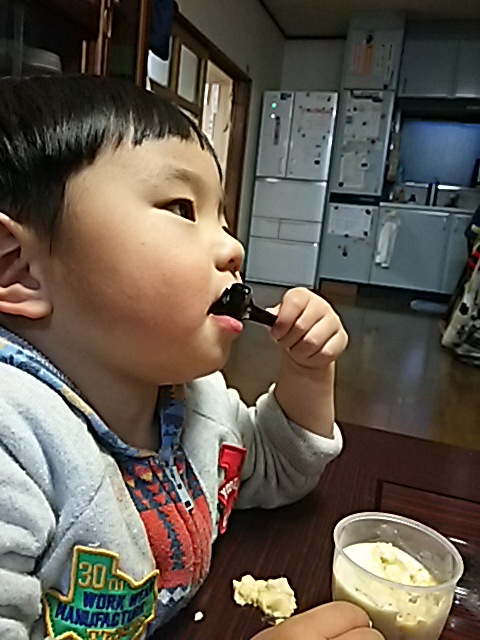 我が家の王子様、『プリン』が大好きです\(^_^)/「okasinoie」のプリン、美味しかったです!