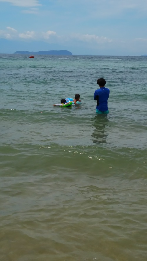 我が家の王子様、『海の日』に海水浴とSUPでした\(^-^)/海、大好き!疲れしらず。すごいパワーです。