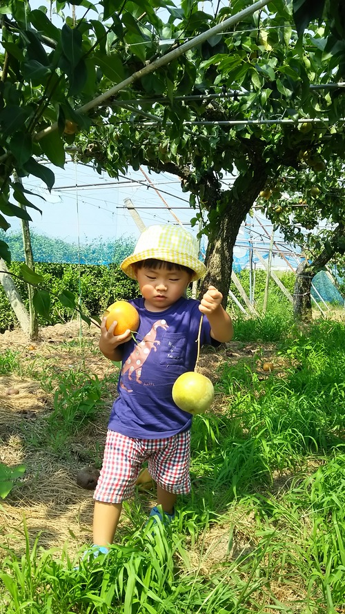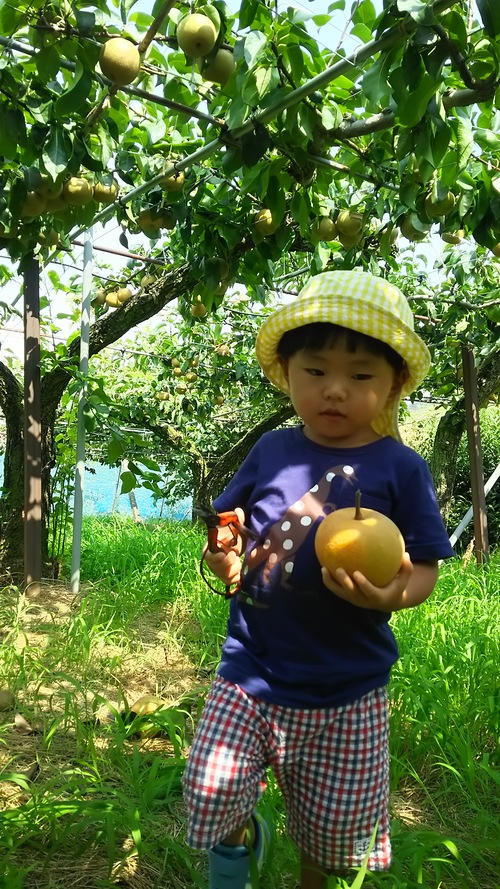 我が家の王子様、『梨狩り』に行きました\(^-^)/とっても、楽しかったようです!