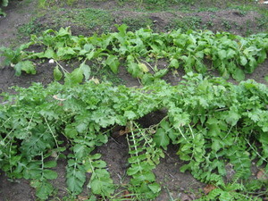 草の中ですが、かぶらや大根など、無農薬、有機肥料ですくすくと育っています。