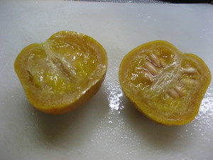 簡単に、皮が外れます。果肉をざるの上に置くと、果汁がうまく取れます。