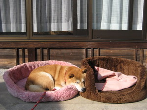 お昼間は、日当たりのいいところで、好きなほうで寝んねしてます。