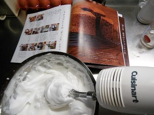 卵白の泡を壊さないように、でもしっかり混ぜて、型に流します。