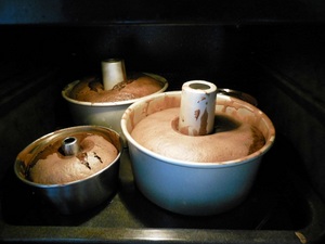 焼きあがったら、逆さにして冷まします。乾燥しないようにします。