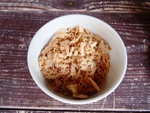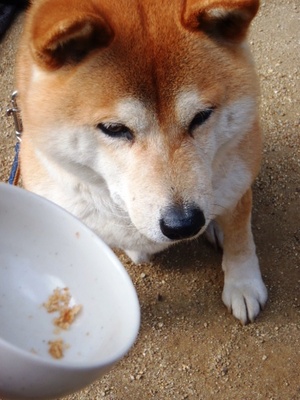 いつも、ケーキを作った後、愛犬の「鉄」には、型にへばりついている、”カス”をあげます。
