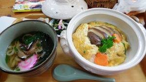カツ丼のカツの代わりに、大きな椎茸の肉づめ煮が真ん中にドカンとありました。