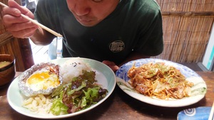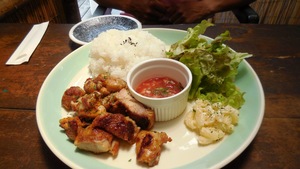 初日のランチは、「お好み焼」と「サルサソースのチキン」を注文。
