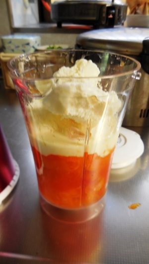 豆乳と氷とバニラアイスを少々加えて、「ガー。。。!」