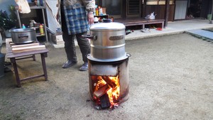 もち米を磨いで、かして、蒸して….(#^.^#)