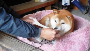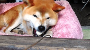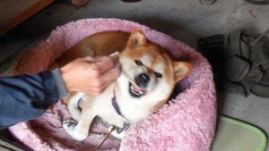 主人は、できたてのお餅を、愛犬「鉄」と試食(●^o^●)