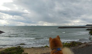 地元の瀬戸内海、荘内半島・大浜でも波が立ちました。