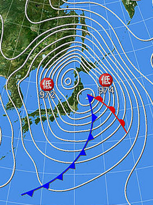 爆弾低気圧だった今日の天気図