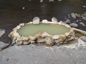 源泉が高温のため、体を包む気泡をみることは難しいが