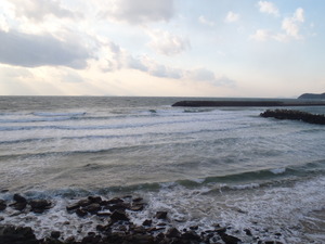 SUPで初乗りしようと地元、瀬戸内海の大浜へ