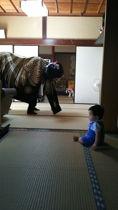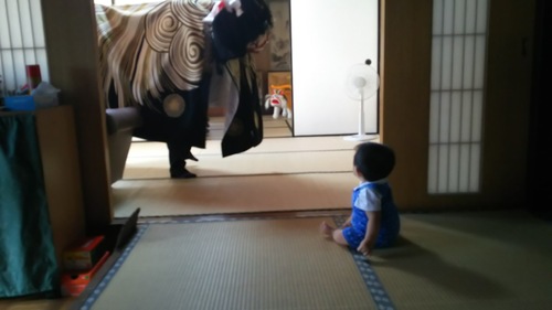 秋です(*^^*)金木犀が香り出しました!『お祭り』の季節です(^^)我が家にも、獅子舞が来てくれました!我が家の王子様、びくともせず、獅子舞を興味深そうに見ていました(^-^)