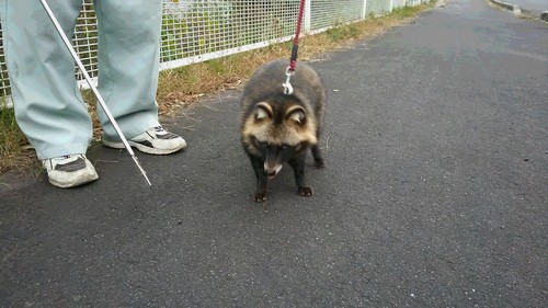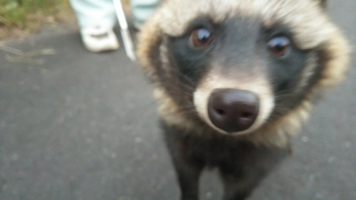 日課のジョギング中に出会う『たぬき』さん(^^)おじさんと散歩をしています。声をかけてみました。名前は「さくらちゃん」、お座りが出来るそうです!とってもかわいかったです(*^^*)