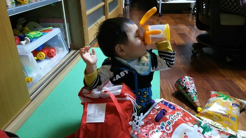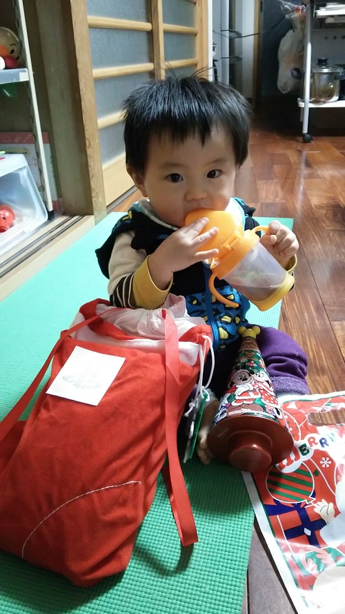 我が家の王子様、初の『クリスマスイブ』です!保育所や近所の方、親戚の方など、プレゼントをもらいました\(^-^)/1歳になり、コップマグでも上手に飲めるようになってます(^^)毎日、ご機嫌さんで、保育所に出勤しています。