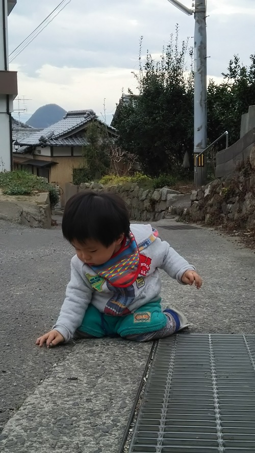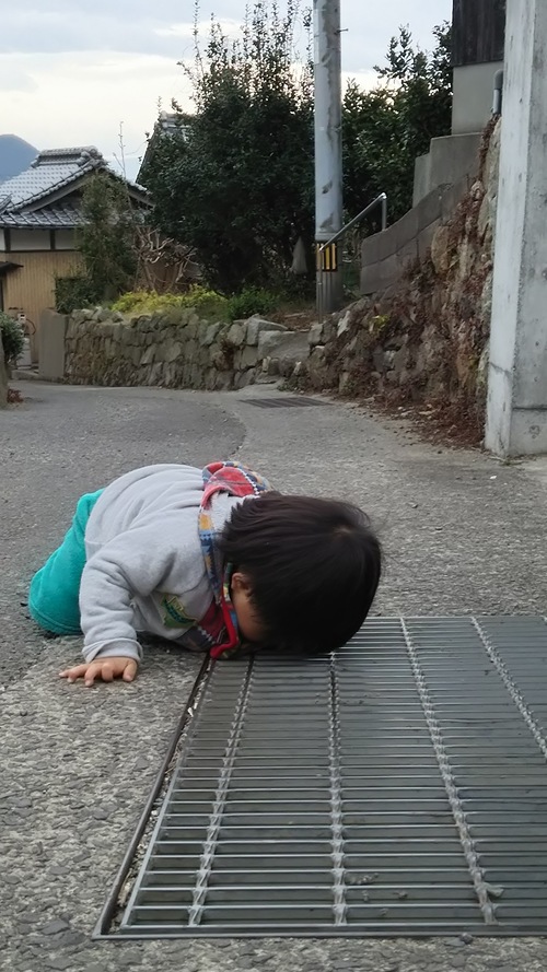 我が家の王子様、穴があったら何かを入れたいらしい!道路の真ん中で、グレーチングを見つけて、夢中で遊んでいます(*^^*)