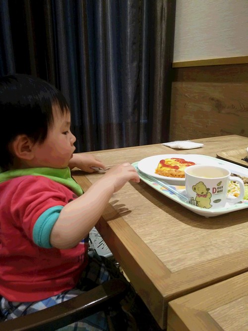 我が家の王子様、初めてのお子さまランチ(*^^*)まだ、上手に食べれませんが、注文してみました!大喜びでした\(^_^)/