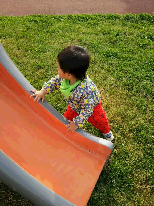 今日は、天気が良かったです!朝からハイテンションの、我が家の王子様でした(^^)朝、保育所に行く前に、公園でひと遊び\(^-^)/