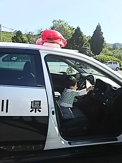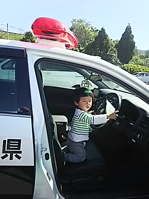 我が家の王子様、車の運転にはまってます(*^^*)『パトカー』に乗らしてもらって、ご機嫌さんです(^-^)/