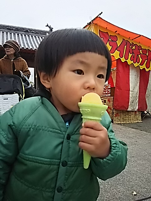我が家の王子様、『大坊市』に行きました(^^)アイスクリームが、欲しい!寒いのに美味しそうに食べていました(*^^*)