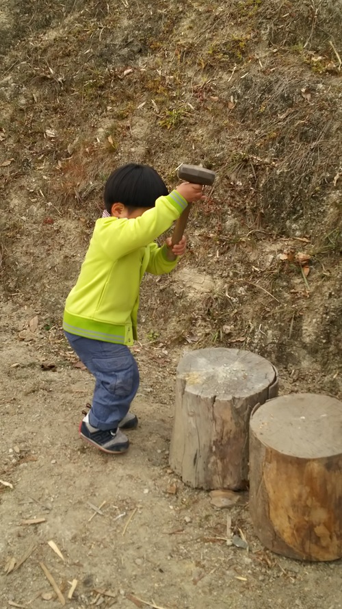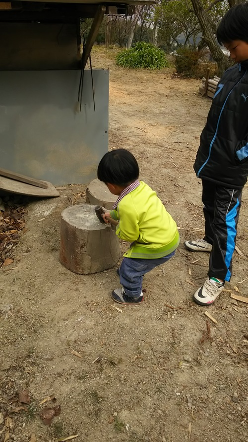 我が家の王子様、『大工さん』です!金槌ふるの、上手でびっくりしました!