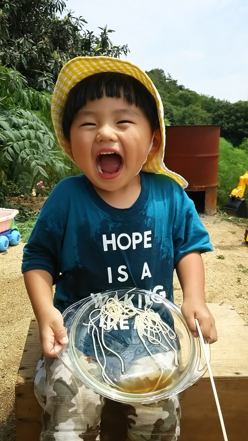 我が家の王子様、『流しそうめん』でした\(^-^)/楽しそうでした!