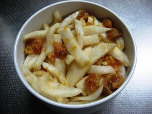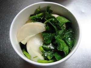 軽く塩でつけたかぶらを混ぜて、2時間ぐらい置くと出来上がり。