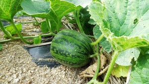 今年、初挑戦の「スイカ」、それなりに、実がついています!