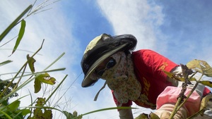 私は、こんな格好で、畑仕事を頑張っています(●^o^●)