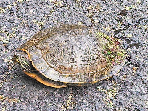 いつもの散歩道に出没!『亀さん』です(^O^)一生懸命、道を横断してました!(^^)!