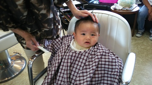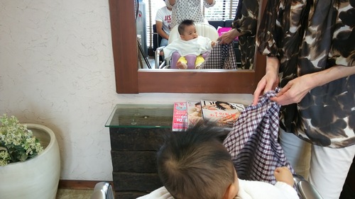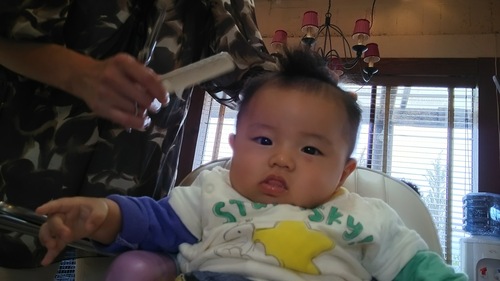我が家の王様、私がカットして、落武者でした(;_;)だいぶん、しっかりと座れるようになったので、美容院にデビューしました(^^)なんだか、おじさんっぽい感じ….夏にむけて、すっきりしました\(^o^)/