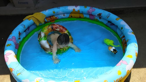 近所の方から、プールと浮き輪を頂きました(*^^*)早速、我が家の王様に、庭で水をはってみました!とってもご機嫌さんで遊びました(^^)この暑さ、元気に乗り切って欲しいです\(^_^)/